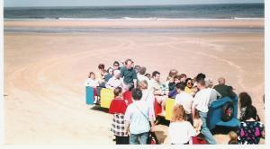 HERE WE HAVE OUR SAND TRAIN WHICH TRAVELS ABOUT A MILE ALONG OUR LARGE SANDY BEACH WHICH STRETCH FOR MANY MILES. THE TRAIN OFTEN GOES INTO THE SEA BRIEFLY MAKING THE RIDE MORE EXCITING.